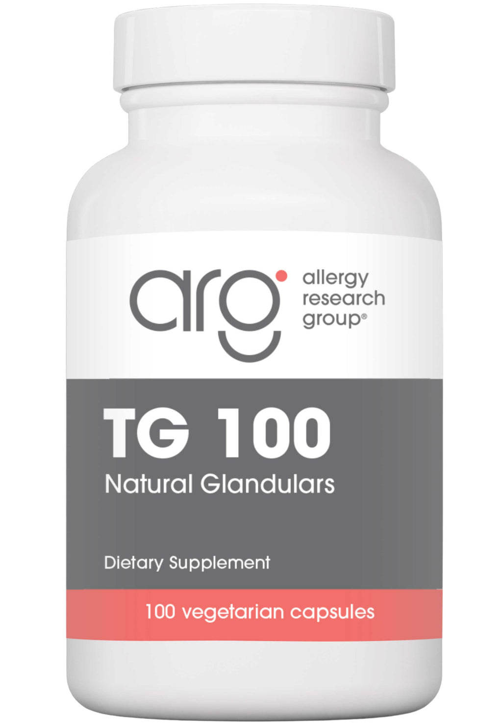 - Allergy Research Group TG 100 provides tissue from the thyroid gland, and other glands associated with thyroid function. Natural glandular material is derived from government-inspected, range-fed animals, raised in New Zealand and Australia, whose animal husbandry regulations are among the strictest in the world.