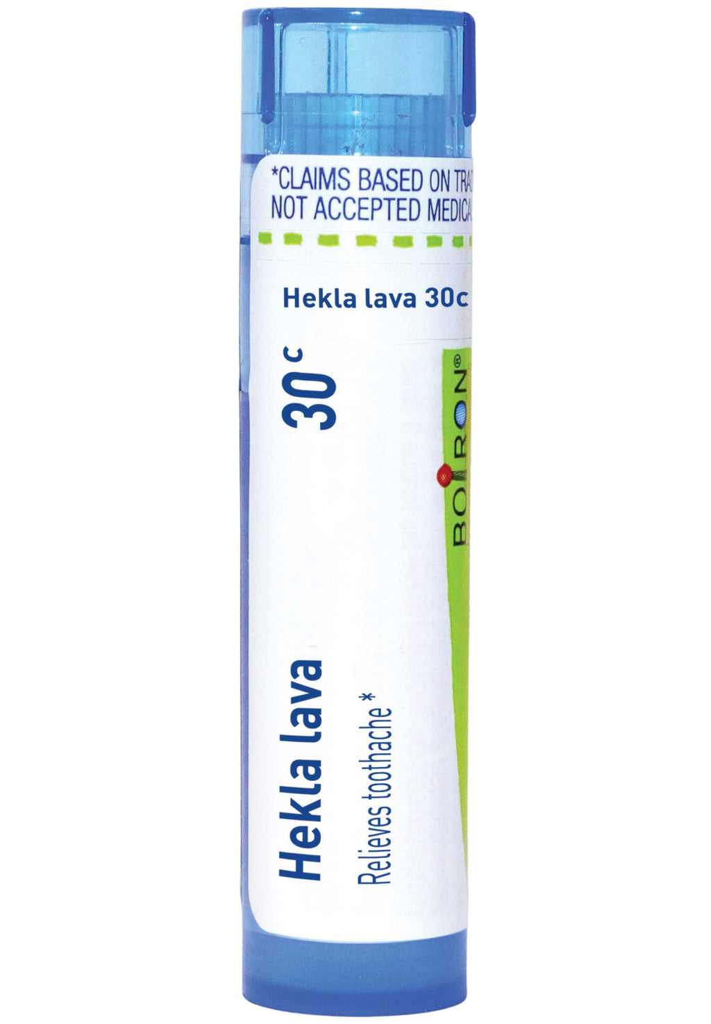 - Boiron Homeopathics Hekla Lava relieves toothache.* The pellets melt in your mouth and can be taken on the go, no food or water needed.