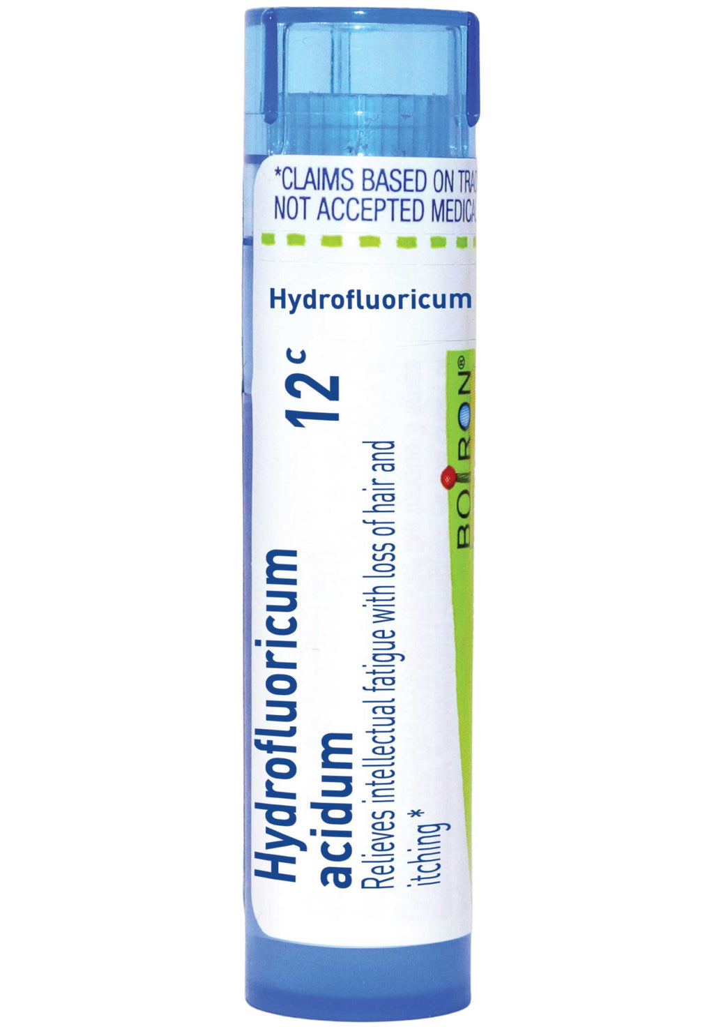 - Boiron Homeopathics Hydrofluoricum Acidum intellectual fatigue with loss of hair and itching.* The pellets melt in your mouth and can be taken on the go, no food or water needed.