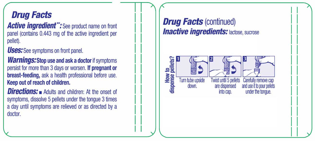 Adults and Children: At the onset of symptoms, dissolve 5 pellets under the tongue 3 times a day until symptoms are relieved or as directed by a doctor.