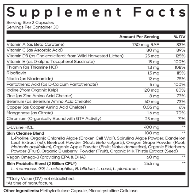 Skin Probiotic Blend (2 Billion CFU‡) ... 25.5 mg ... **