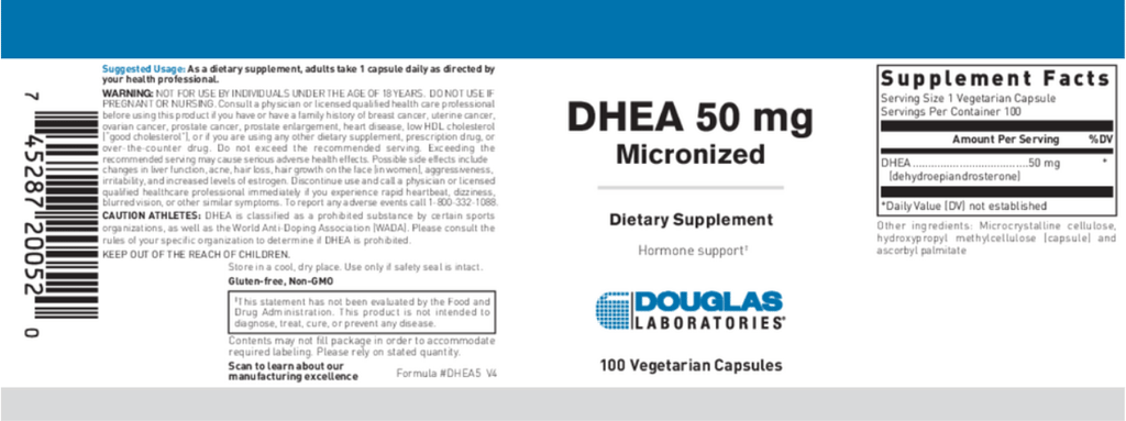 - Douglas Laboratories DHEA capsules contain highest purity micronized dehydroepiandrosterone (DHEA) produced under strict Good Manufacturing Practice (GMP) standards.