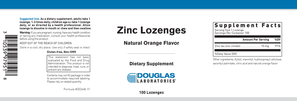 - Douglas Laboratories Zinc Lozenges supply a great-tasting zinc flavored with natural orange extracts.