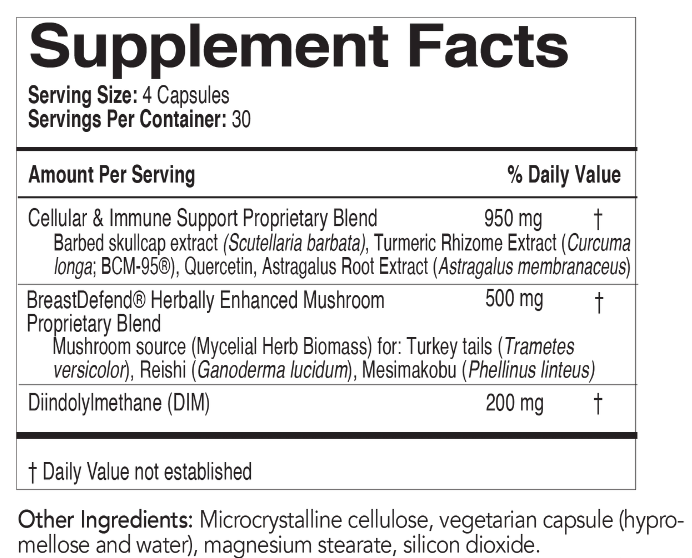 BreastDefend® Herbally Enhanced Mushroom Proprietary Blend ... 500 mg ... †