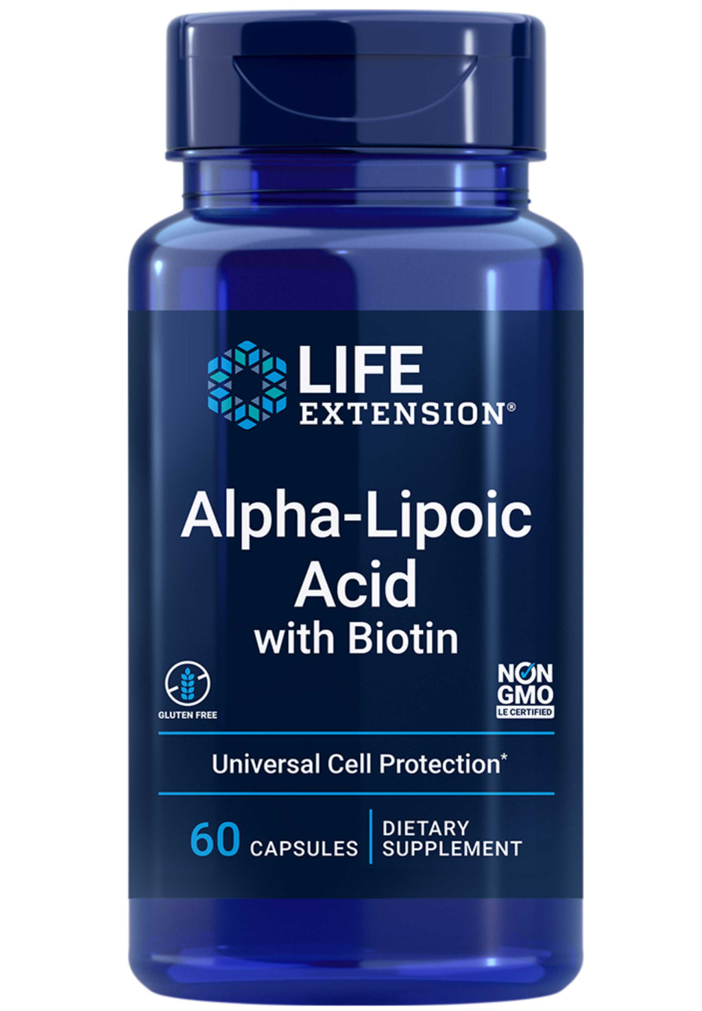 - Life Extension Alpha-Lipoic Acid with Biotin provides antioxidant benefits of alpha-lipoic acid with the added support of biotin in a twice-a-day capsule form to promote liver and nerve health and protect against oxidation.