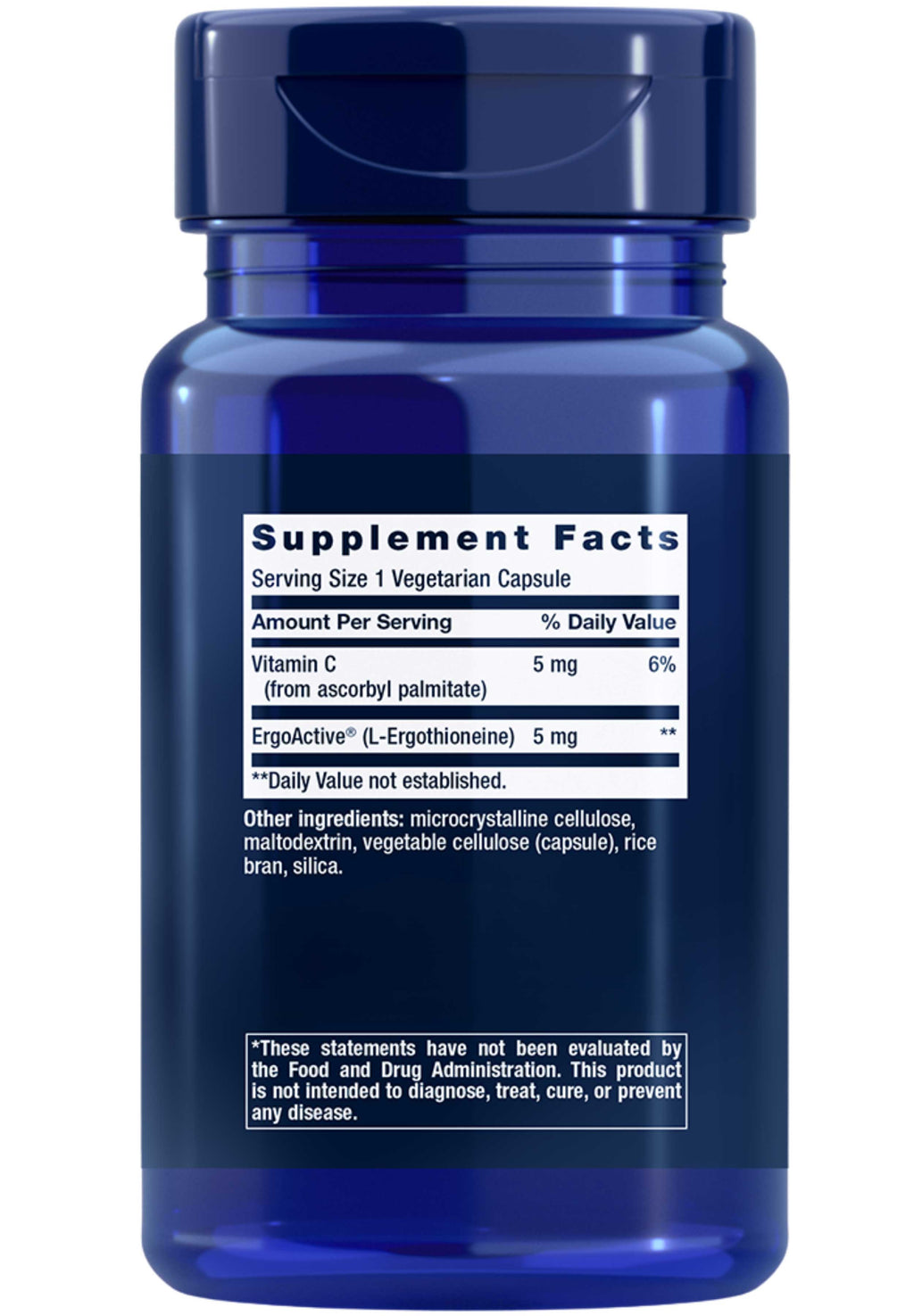 - Life Extension Essential Youth L-Ergothioneine novel longevity formula delivers 5 mg of ergothioneine. This amino acid, found in high concentrations in certain mushrooms, has piqued the scientific community’s interest due to its cell-protective properties and its great promise in supporting healthy aging.
