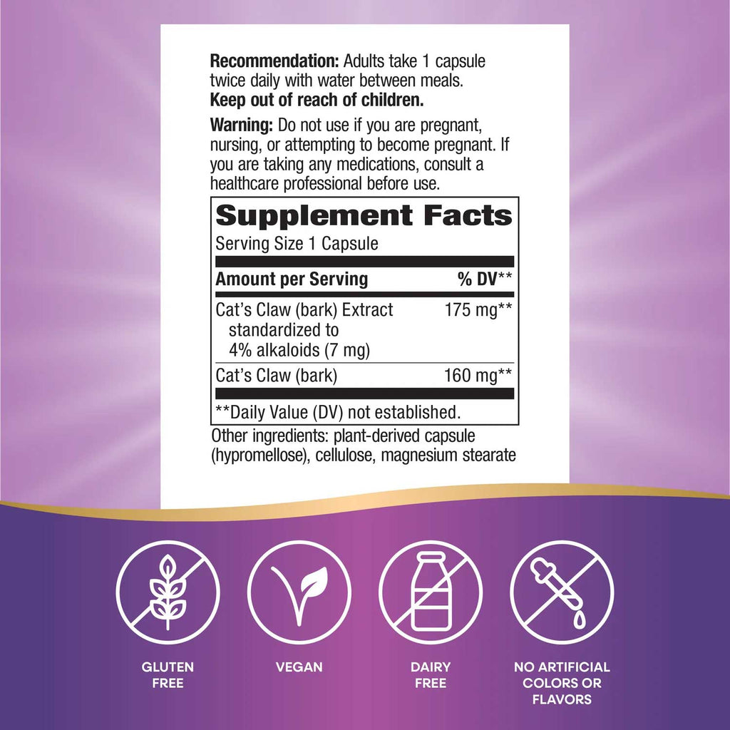 - Nature's Way Cat's Claw Standardized Extract provides 175 mg per serving and supports immune function.*