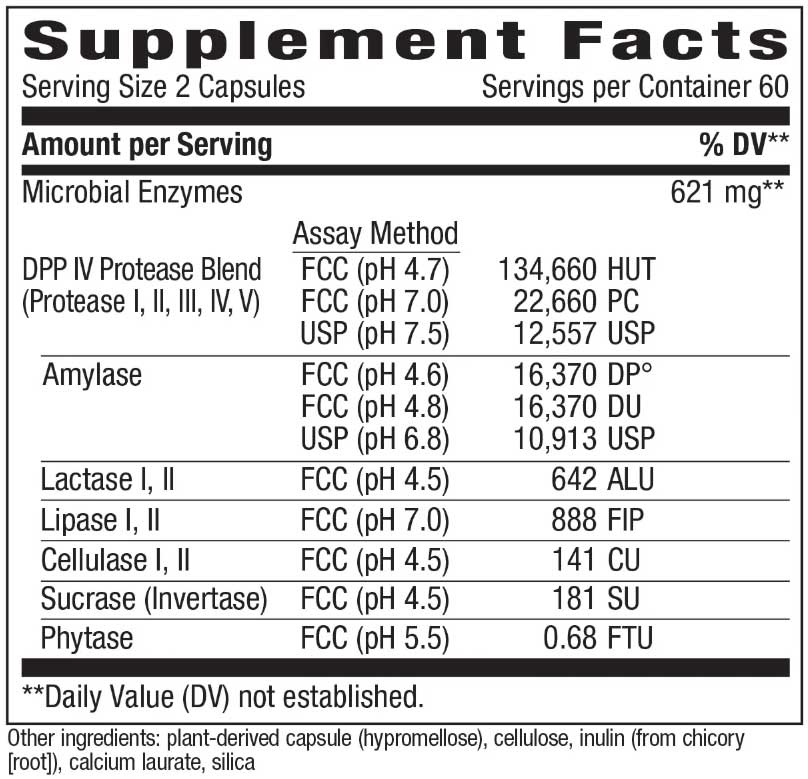- It contains DPP IV (dipeptidyl peptidase) activity from a protease enzyme specific to the digestion of gluten so you can enjoy every meal and moment.* (†Gluten from grains and casein from dairy.)