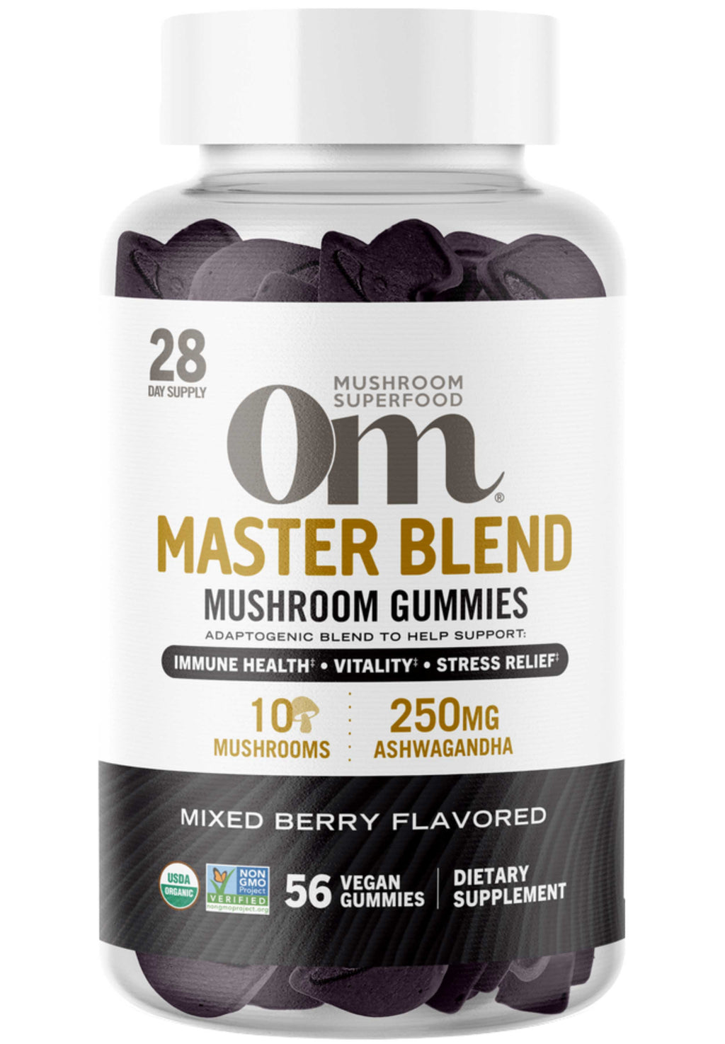 - Om Mushroom Superfood Master Blend powerful mushrooms plus KSM-66® Ashwagandha root extract into one comprehensive formula to help support immune health, gut health, and stress relief to aid through full-life's twists and turns.‡