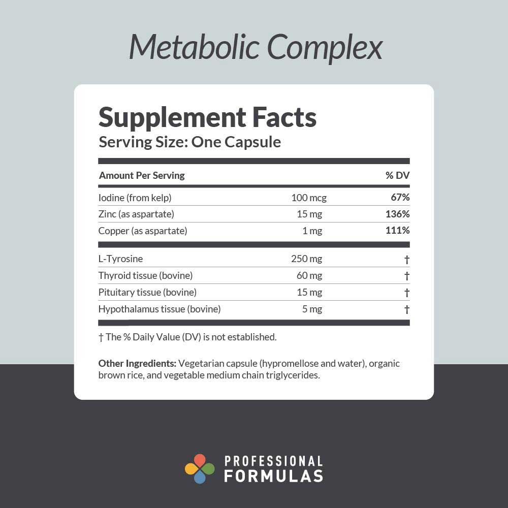 - Professional Formulas Metabolic Complex provides glandular support for healthy thyroid, hypothalamus, and pituitary.